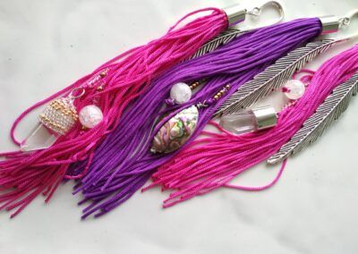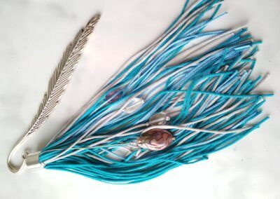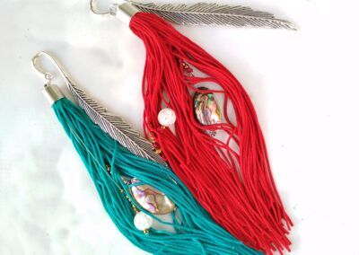 Między różnokolorowymi frędzlami zwykle umieszczam muszelkę paua – symbol kobiecej mocy.