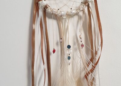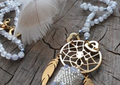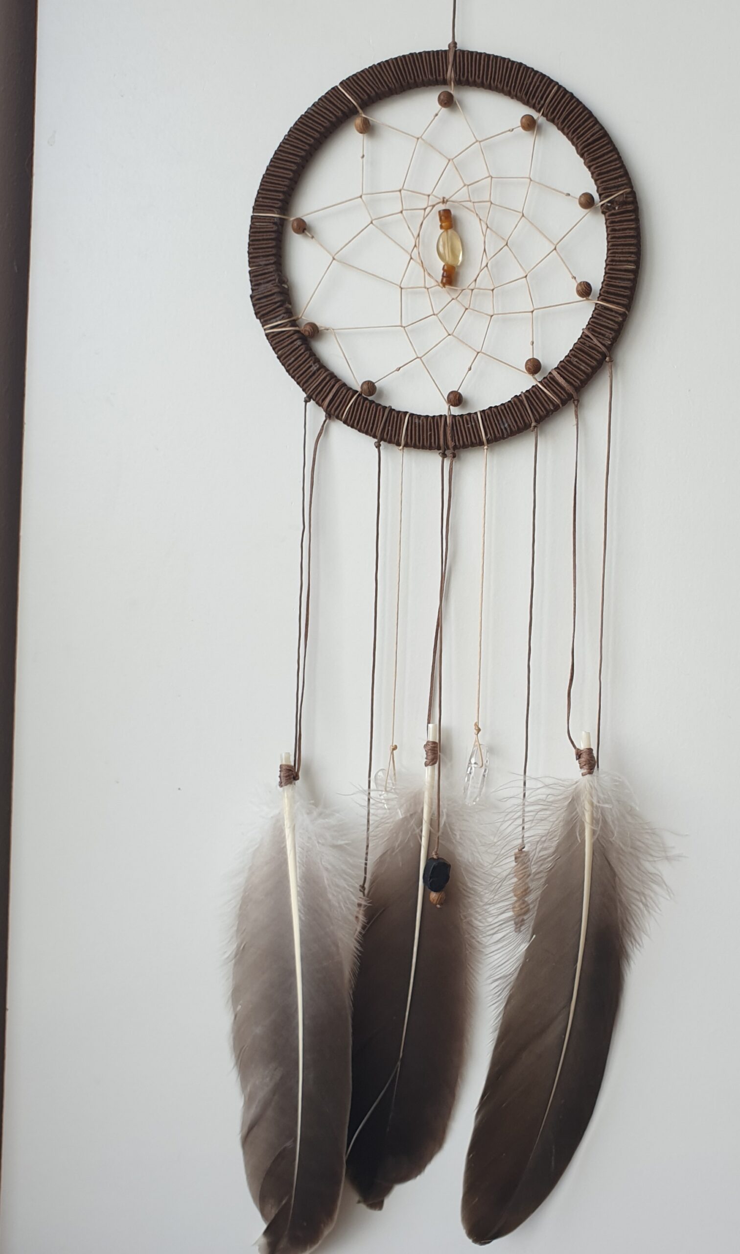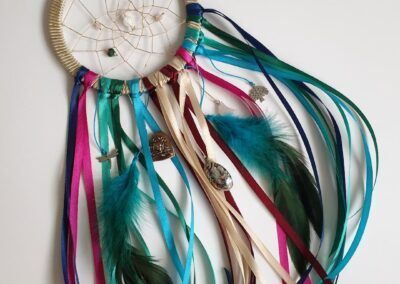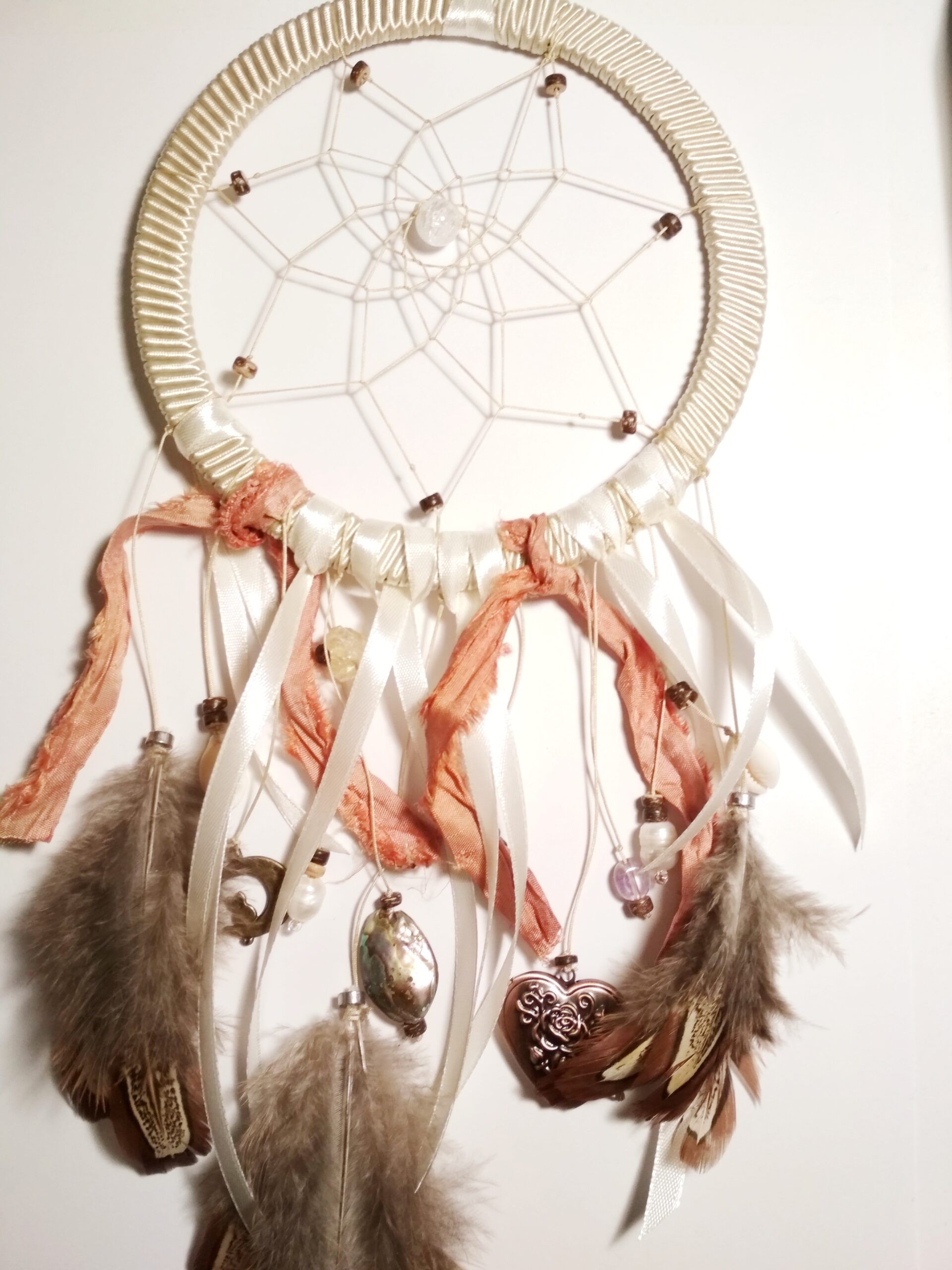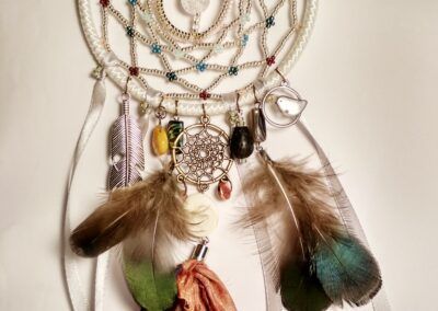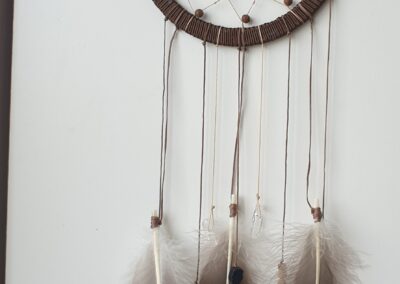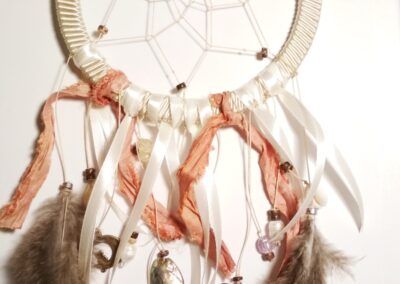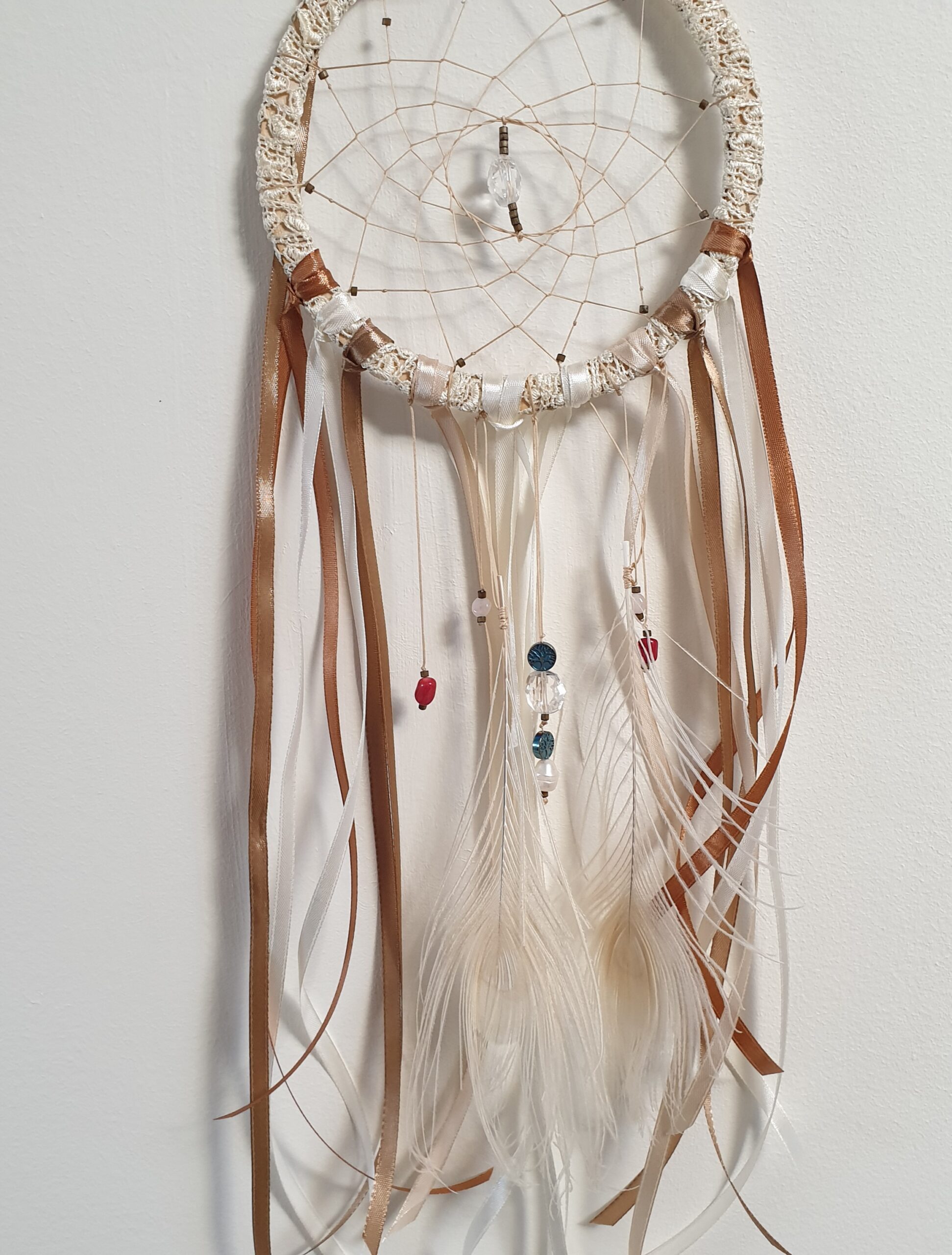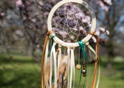 Okrąg reprezentuje kręgi życia, sieć to reprezentacja marzeń, które tkamy w czasie snu w naszych duszach. W moje łapacze wplatam marzenia i intencje, działają w wymiarze duchowym i mają wpływ na postrzeganie świata i rzeczywistości. Wybieram kamienie, naturalne pióra i materiały. Zachęcam, by osoba, której łapacz ma służyć dodała coś od siebie, by zmieniał się stale wraz ze zmianami w jej życiu.